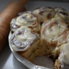 - Make the icing: In a medium bowl using a handheld or stand mixer fitted with a paddle or whisk attachment, beat the cream cheese on high speed until smooth and creamy. Add the butter and beat until smooth and combined, then beat in the powdered sugar and vanilla until combined. Using a knife or icing spatula, spread the icing over the warm rolls and serve immediately.