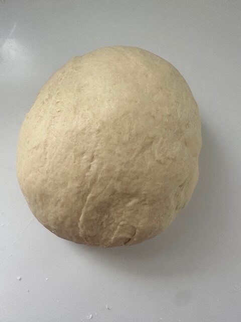 - 3. Transfer dough to a lightly floured surface. Using floured hands, knead the dough for 5-15 minutes. You should have a smooth ball of dough. If the dough is super soft or sticky, you can add a little more flour. Place in a lightly greased bowl (I use non-stick spray), cover loosely, and let the dough rest for about 10 minutes as you get the filling ingredients ready.