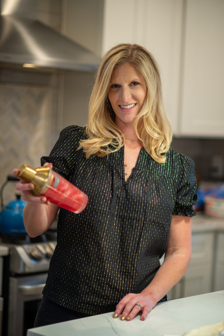 To make this drink ahead of time, I fill a pitcher of the drink and then pour one serving into a cocktail shaker with ice and shake for 30 seconds. For a dinner party, I also serve nonalcoholic options that look festive. Read below for a great alcohol-free version of this cocktail.