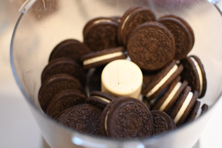 If you do not have a food processor, you can use a strong blender. Or, place Oreos in a large resealable bag and crush with a mallet or rolling pin.
