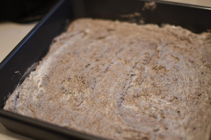 - Gently mix the softened Cool Whip into the crushed Oreos. Spread the mixture in a 9 by 9 baking dish. Freeze.