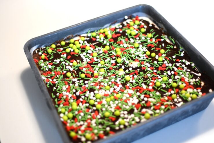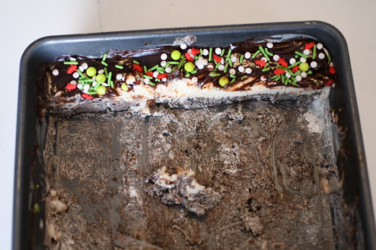 This addicting ice cream layer dessert is a crowd pleaser and one my family makes on repeat. The layers of Oreo, ice cream, and fudge make for a sweet and satisfying ending to a family meal. The sprinkles were an added touch when I made it back in December so you can decorate the top or just leave plain.