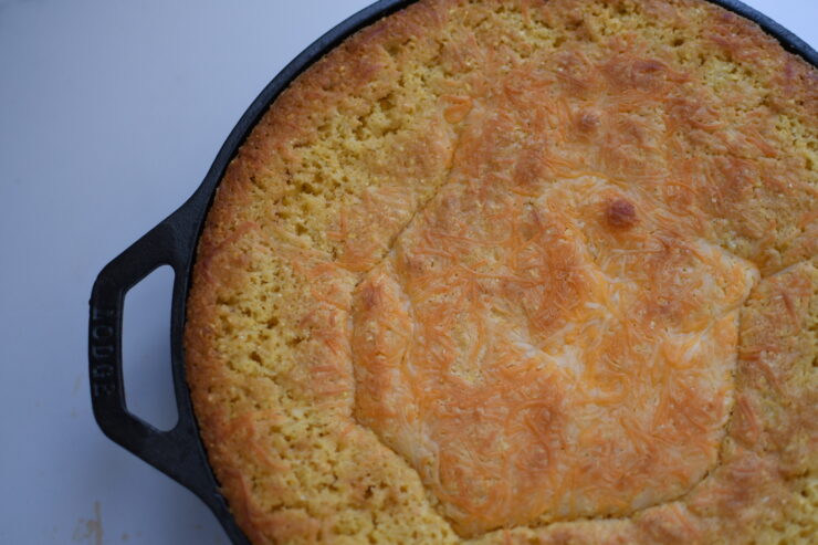 Good food and great company can stick with you for a lifetime and that’s what I love about cooking and entertaining. Nancy graciously shared the recipe for her skillet cornbread, and I have been making it ever since. Enjoy this outrageously delicious sweet and savory side dish. I bet you will be surprised by the secret ingredient!